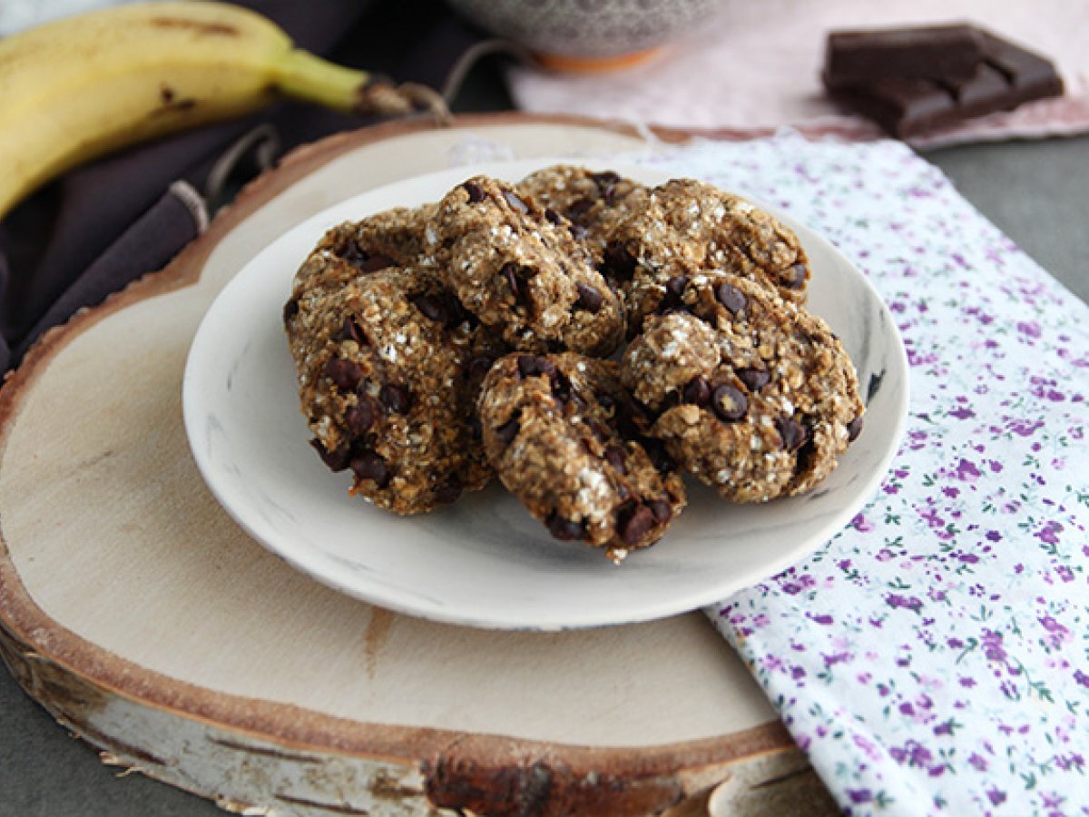 Verwarm de oven voor op 180°C. Pureer de banaan en voeg dan de havermout toe. Meng goed. Voeg de chocolade chips toe. Meng opnieuw.