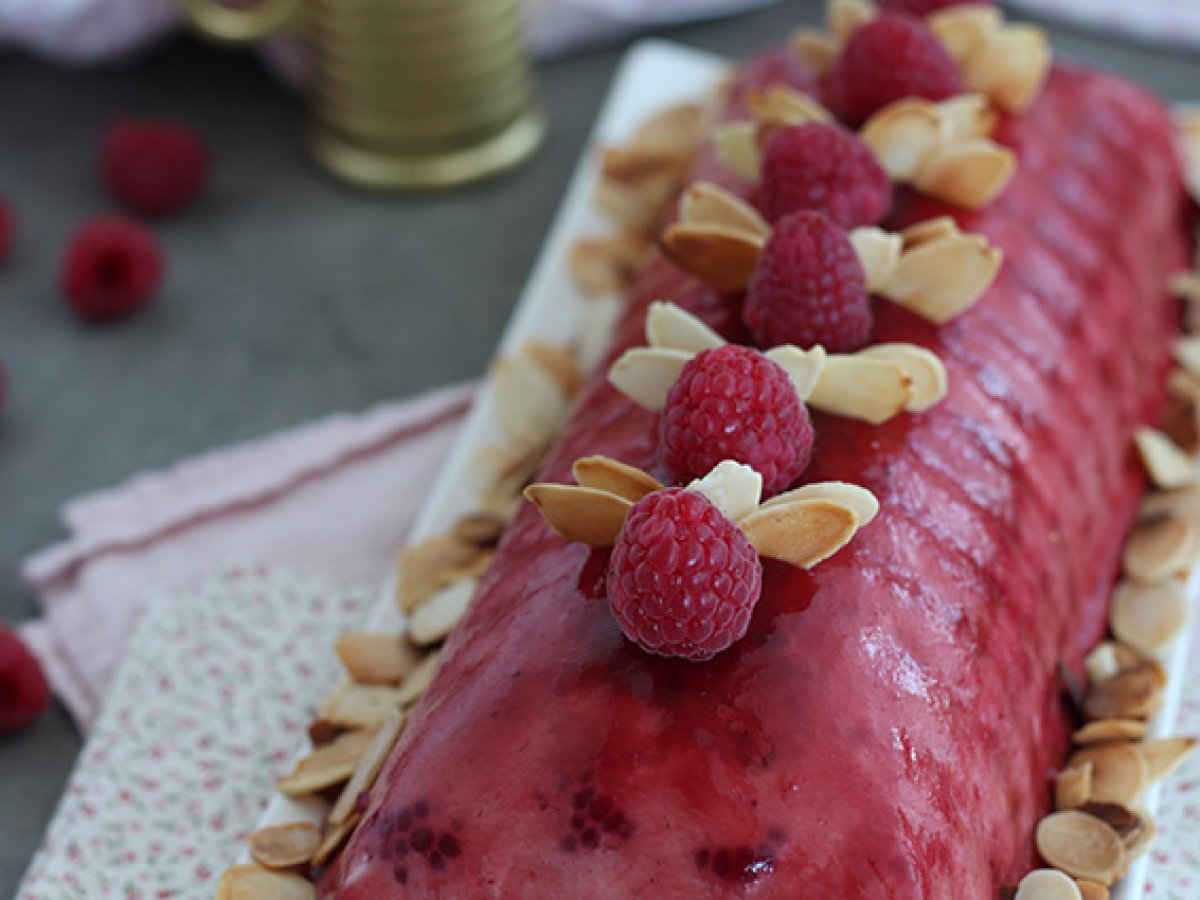 In ons recept hebben we geen room op de laatste laag frambozen gesmeerd. De boomstam bleef heel goed bij elkaar, maar we raden je aan om dit wel te doen voor een betere houdbaarheid.