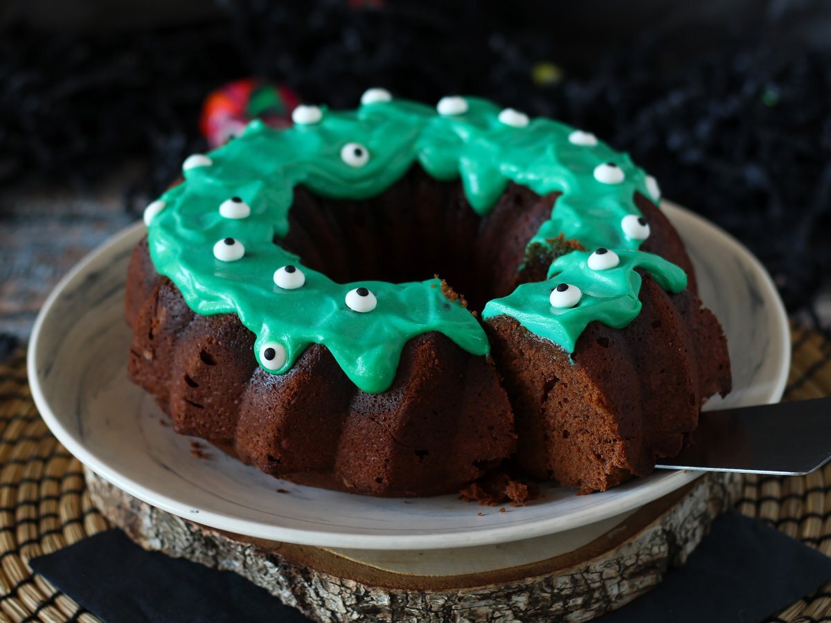 Niemand weet waarom het bundt cake heet, maar we weten allemaal hoe lekker het is. Het is een zachte, chocoladecake verrijkt met een heerlijk glazuur. Voor Halloween brengen we je een vreselijk lekkere versie van dit dessert. Het zal je hoofd en... je ogen doen verliezen! Probeer ons chocolade Halloween donut recept door de stap-voor-stap instructies te volgen. Je zult het heerlijk vinden!