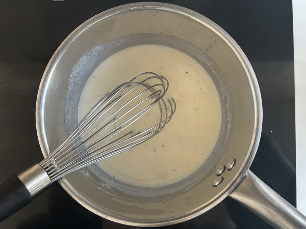 Maak een béchamelsaus door de boter te smelten en dan de bloem en melk toe te voegen tot je de gewenste consistentie hebt bereikt. Breng op smaak met zout, peper en nootmuskaat.