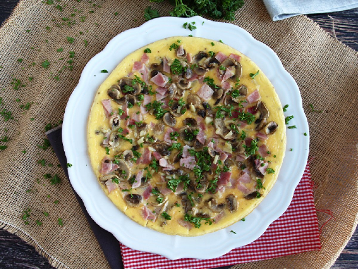 Er zijn van die recepten waar je gewoon geen genoeg van kunt krijgen... Dit is duidelijk het geval met de omelet! Hier stellen we een versie voor met champignons, ham en vers gehakte peterselie bovenop voor het opdienen. Een eenvoudige, effectieve maaltijd die je kunt serveren met een gemengde salade op dagen dat je je niet bijzonder geïnspireerd voelt ;-)