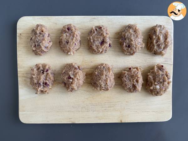 Vorm de nuggets met je vingers (als het mengsel te plakkerig is, aarzel dan niet om je vingers nat te maken om het vormen te vergemakkelijken).