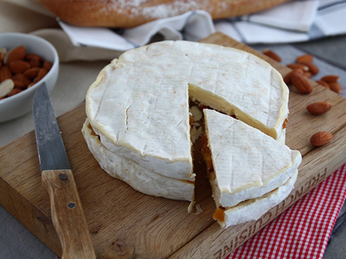 En nu is je brie gevuld met amandelen en gedroogde abrikozen klaar!